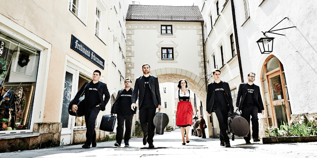 Die n’Aschling Brass bringt den Garten des Mozarthauses zum Beben – mit ihrem unverwechselbaren Mix aus traditioneller Blasmusik, Funk, Jazz und Rock. Die energiegeladene Brass-Formation aus dem Innviertel wird begleitet von der charismatischen Sängerin Bina Blumencron, die unter anderem Engagements am Schauspielhaus Salzburg und bei den Salzburger Festspielen hatte.